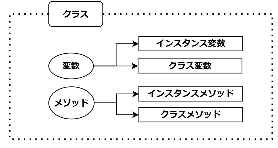クラスは大まかに分類すると情報を保持する変数と処理を行うメソッドで構成されます。